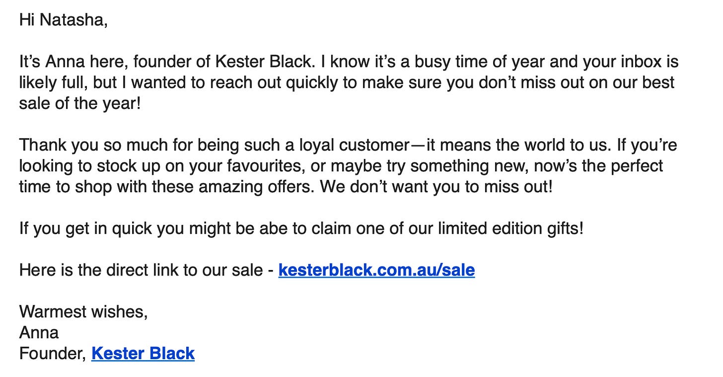 Loved this! I noticed the proliferation of the founder-as-relatable-friend Black Friday comms too. Funnily enough, most of mine were also in beauty (skincare brands, tanning brands, haircare) which is interesting, but also somewhat expected with both my remit and the gender skew in local start-up beauty companies.