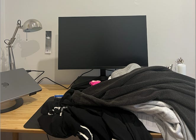 The images in today’s newsletter are various stages of my desk at home during work, and breaks from work, and just the general mess that accumulates.